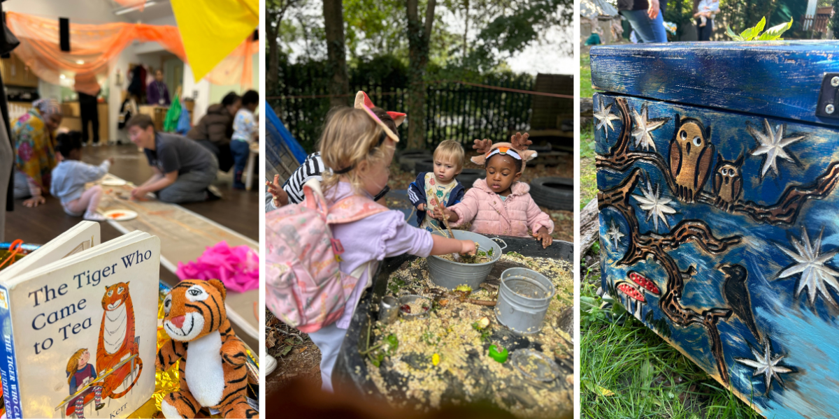 A celebration event gave families the chance to explore all three Story Boxes in one extended session at Hedgerows. Activities spanned craft, outdoor play and sensory storytelling, including: making “Gruffalo crumble”, creating musical instruments, crafting pinecone hedgehogs, exploring a forest‑school area, painting, messy play, and themed role play. The session rounded off with a shared picnic, encouraging a sense of community among the parents and children who attended.