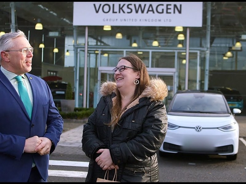 Anne Louise from Bletchley today arrived at the Volkswagen Group Head Office along with Ian Revell, CEO at Milton Keynes Community Foundation, where they met Oliver Larkin, Head of Group Corporate and Public Relations at Volkswagen Group, to handover her spectacular prize.