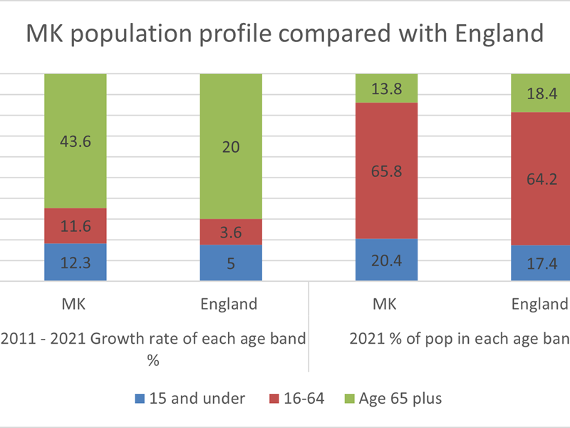 The city still has a young age profile compared with the average in England, but the proportion in older age groups is growing more rapidly than younger.