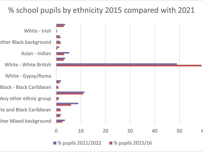 The diverse nature of the Milton Keynes’ population is also being reflected in its schools, where in 2021 52% of children are from Ethnically Diverse backgrounds, up from 42% in 2015/16.